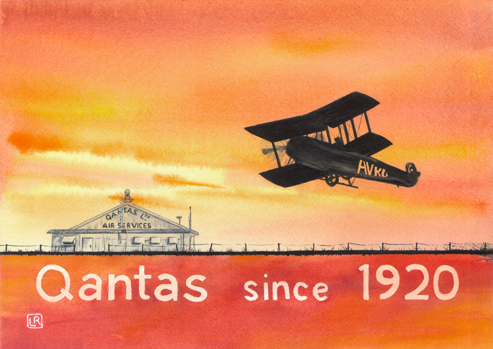 This print entitled 'Qantas Since 1920' is an authentic Giclee Reproduction of an original painted by Lindy Rixon in 2024. The reproduction was printed in the Print Studio at Big Vision & Print, New South Wales.